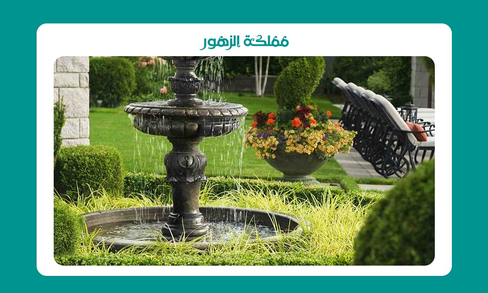 نافورات خارجية: هي طريقة لطيفة لإضفاء لمسة جمالية على الخارج ترفع من مظهر منزلك، يمكنك دمج زخارف العشب هذه